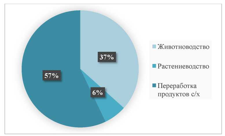 Рис. 1. Распределение работниц по основным отраслям сельского хозяйства, %