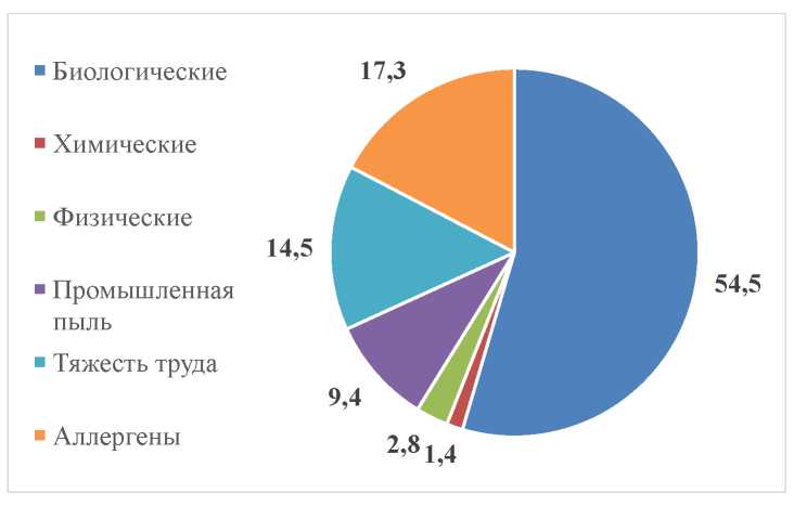 Рис. 4. Доля вредных производственных факторов в структуре профессиональной заболеваемости, %