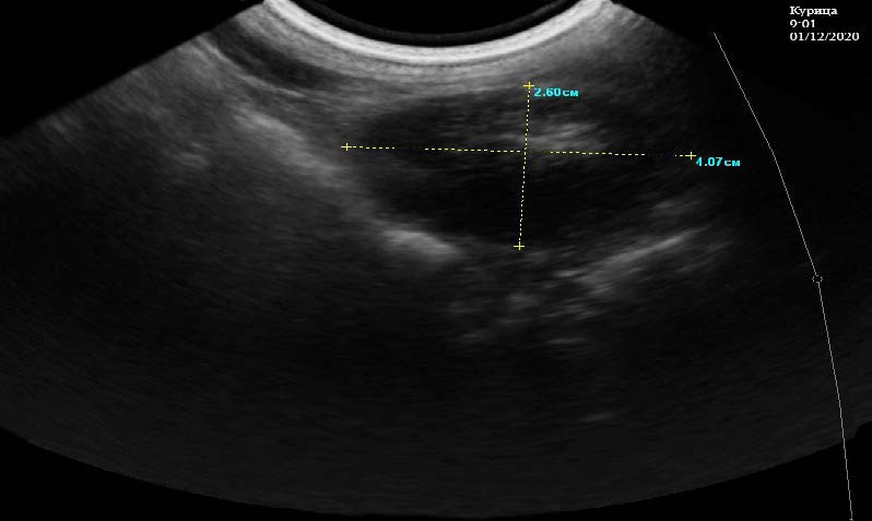 Рис. 1. Ультразвуковое исследование почек у курицы кросс «Хайсекс белый». 9:30 ч. 30.11.2020 г.