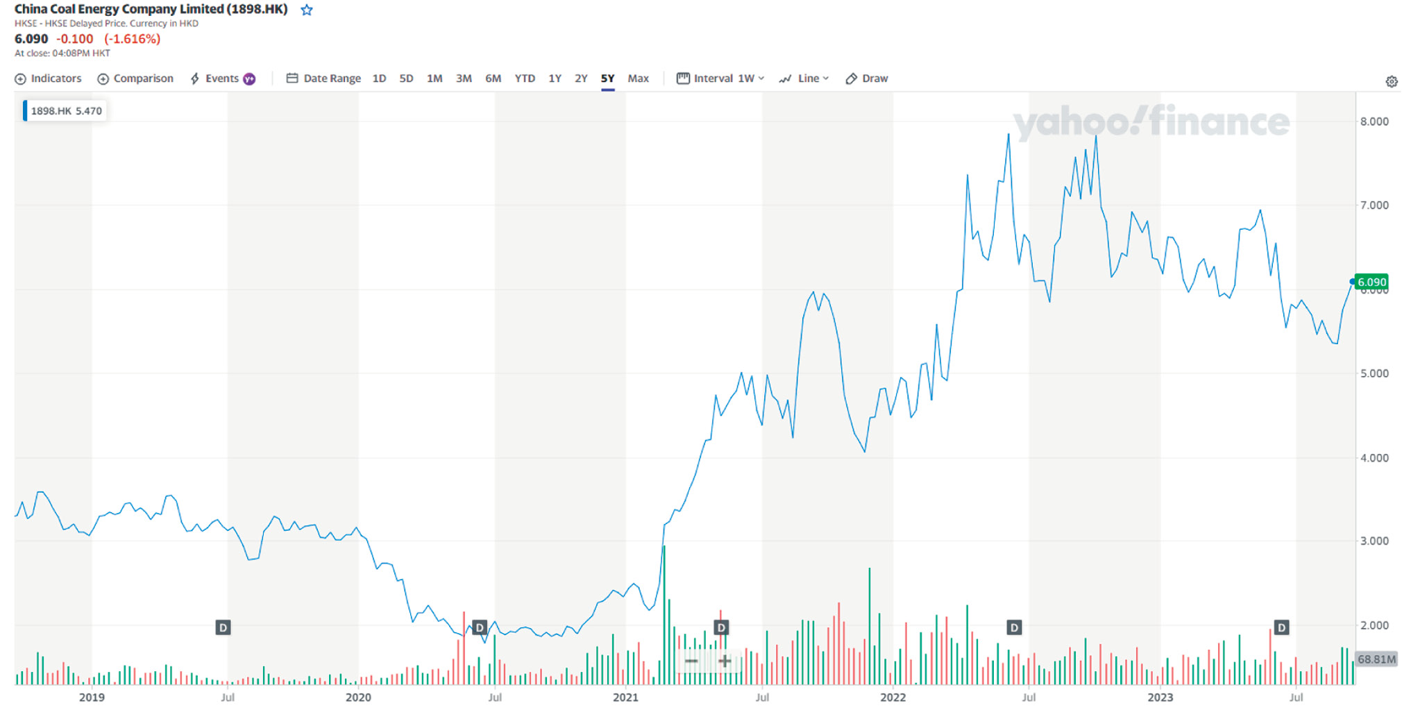 Рис. 5. Биржевой курс China Coal Energy Limited, 2019–2023.