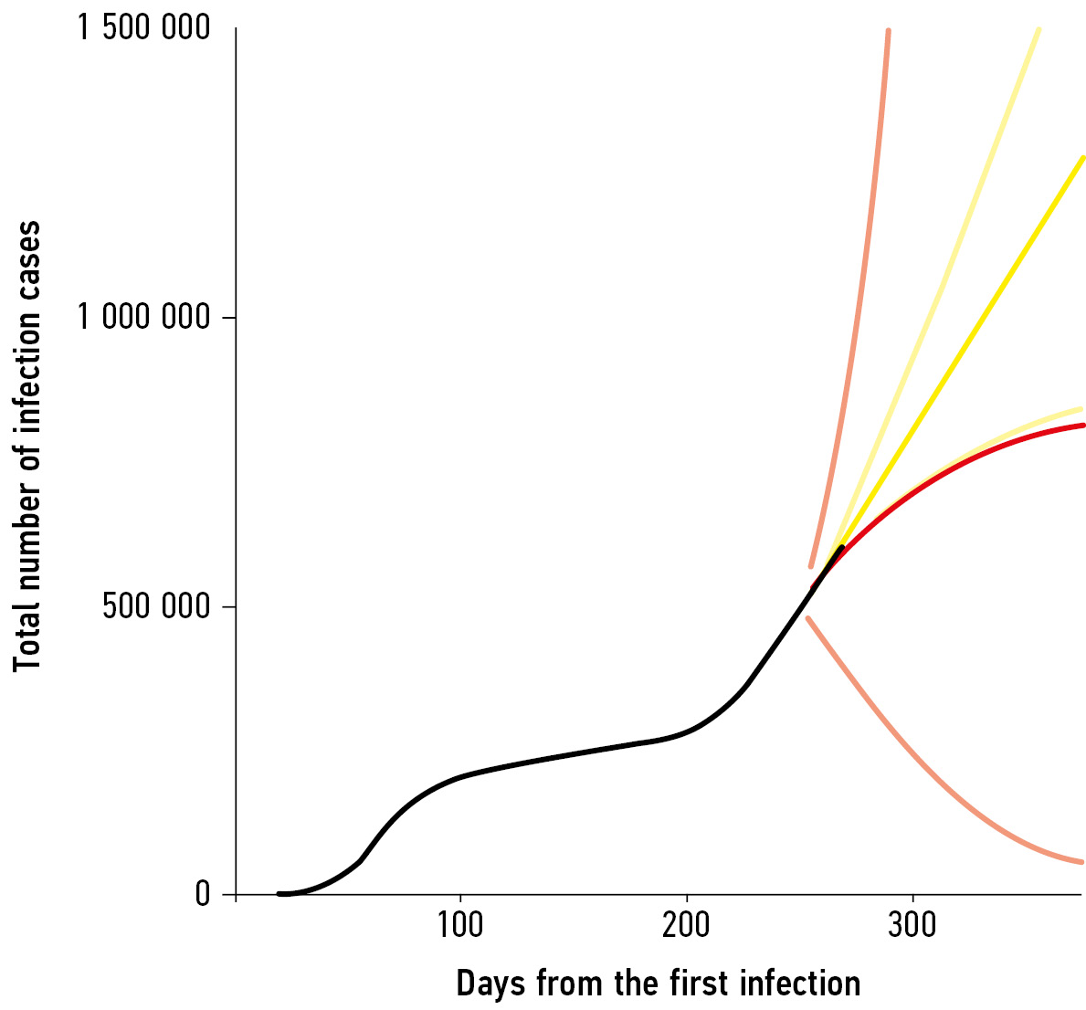 According to the Russian Agency for Health and Consumer Rights website [8], the infection curve demonstrated exponential growth until July 1, 2020. After that, the number of daily new cases reached a constant level of 658±42 (Fig. 3).