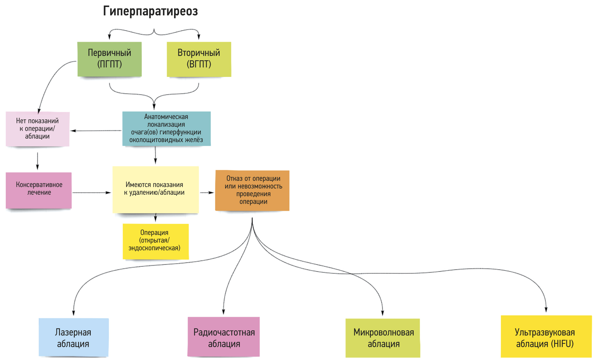 甲状旁腺病理学在内分泌疾病中居第三位,仅次于糖尿病和甲状腺疾病。 目前,只有两种治疗甲状腺功能亢进的方法被广泛应用于临床:保守的和手术的。然而,最近还出现了基于激光、射频、微波等目标物理效应的跨层热分解(消融)方法,超声波。本综述致力于对甲状腺功能亢进的局部热分解方法的现代武库进行批判性分析。本综述的目的是展示现代无创和微创方法治疗甲状旁腺功能亢进的可能性,同时又不反对手术方法。 该综述包括2012年至2021年期间在谷歌学者(Google Scholar,PubMed)中发现的随机临床研究数据。患者总数-1938人(激光消融216人,射频消融225人,微波消融1467人,高密度超声消融30人)。 获得了热分解方法的适用性标准。建立了治疗甲状腺功能亢进的算法。因此,作为手术干预的替代方法,已经分析了四种现代热破坏病理改变的甲状旁腺方法,每种方法都有优点和缺点,其自身的有效性和安全性。 对现有循证实践的分析表明,最受临床医生欢迎的是微波消融方法,而激光消融是一种更有效的热破坏功能亢进的甲状旁腺的方法。