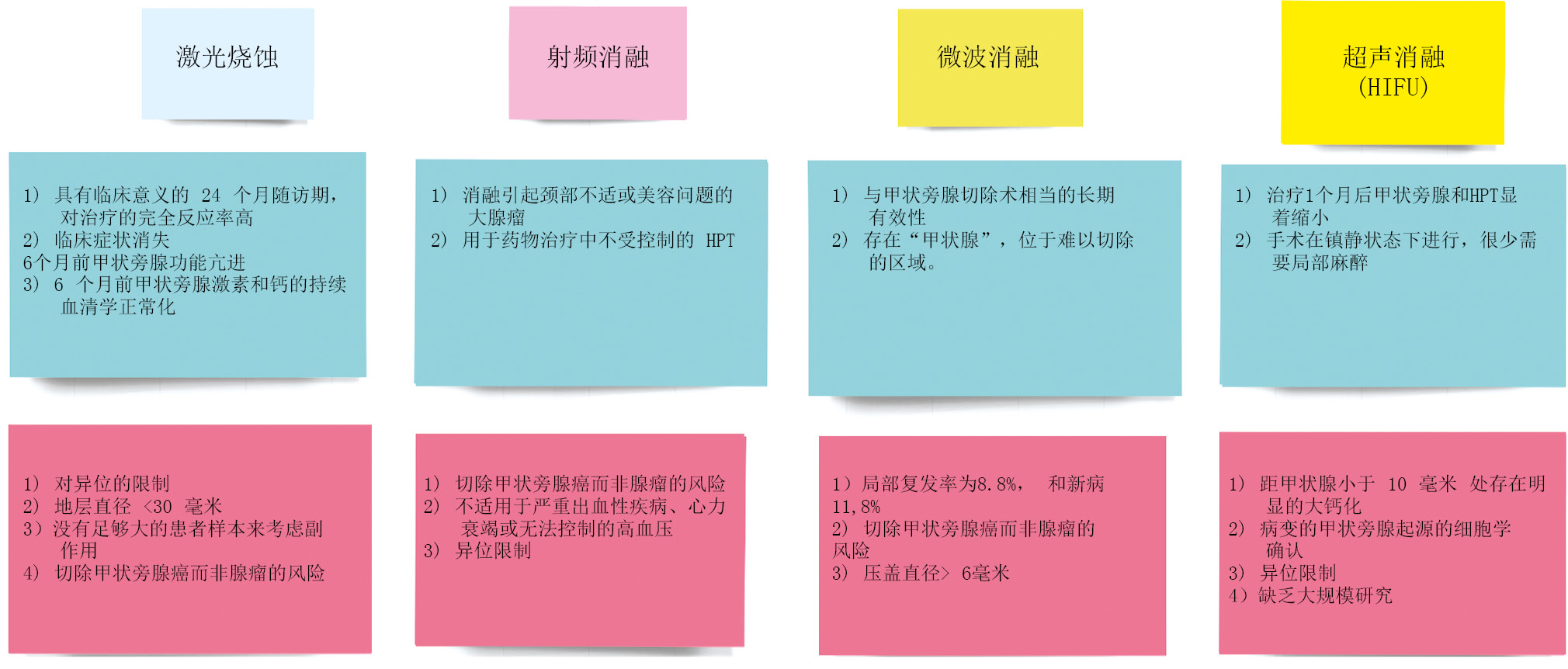 图 9甲状旁腺热破坏方法的优点(绿色)和缺点(红色)的简要说明。