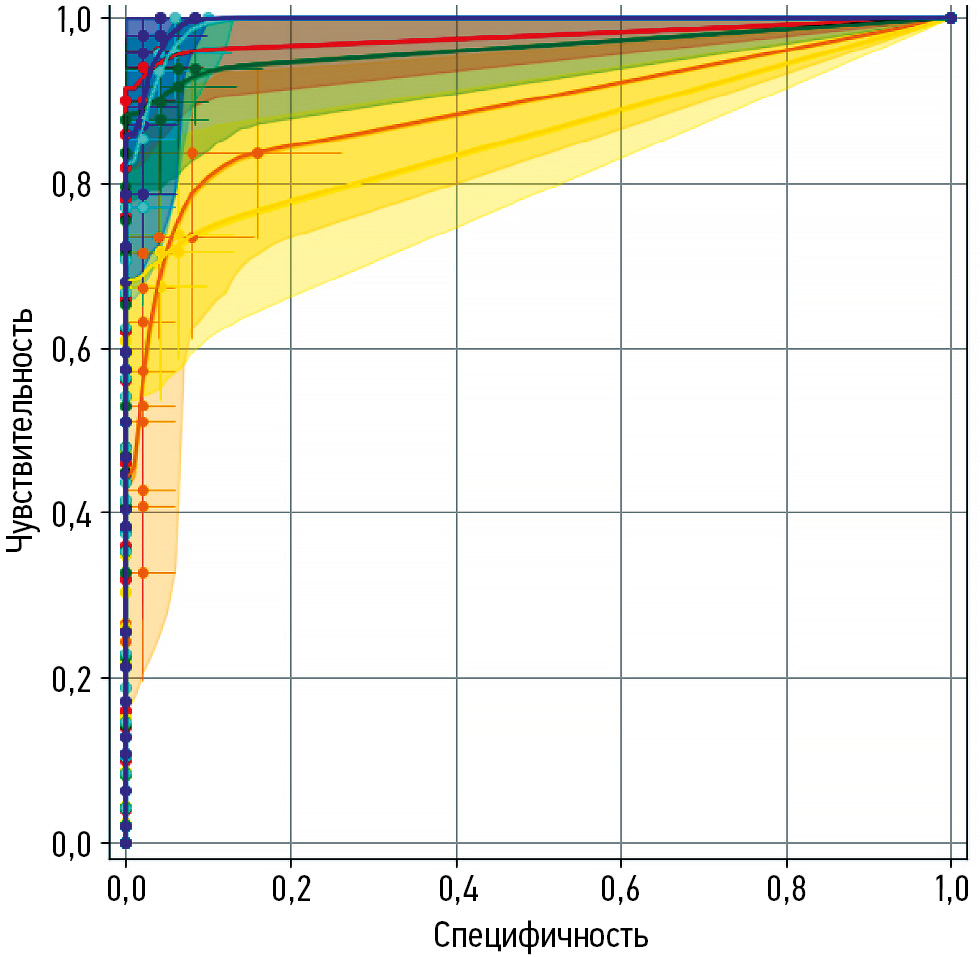 RESULTS: Testing of the artificial intelligence-based software on datasets with signs of adrenal neoplasms demonstrated high diagnostic accuracy metrics that exceeded the declared performance values. AUC ranged from 0.858 to 0.995 (the highest value was achieved by the artificial intelligence single-purpose service-2 for analyzing abdominal computed tomography images); specificity ranged from 0.920 to 1.000 (the highest value was achieved by the artificial intelligence comprehensive service-2 for analyzing chest computed tomography images); and sensitivity ranged from 0.739 to 1.000 (the highest values were achieved by the artificial intelligence single-purpose and artificial intelligence comprehensive service-2 for analyzing abdominal computed tomography images).