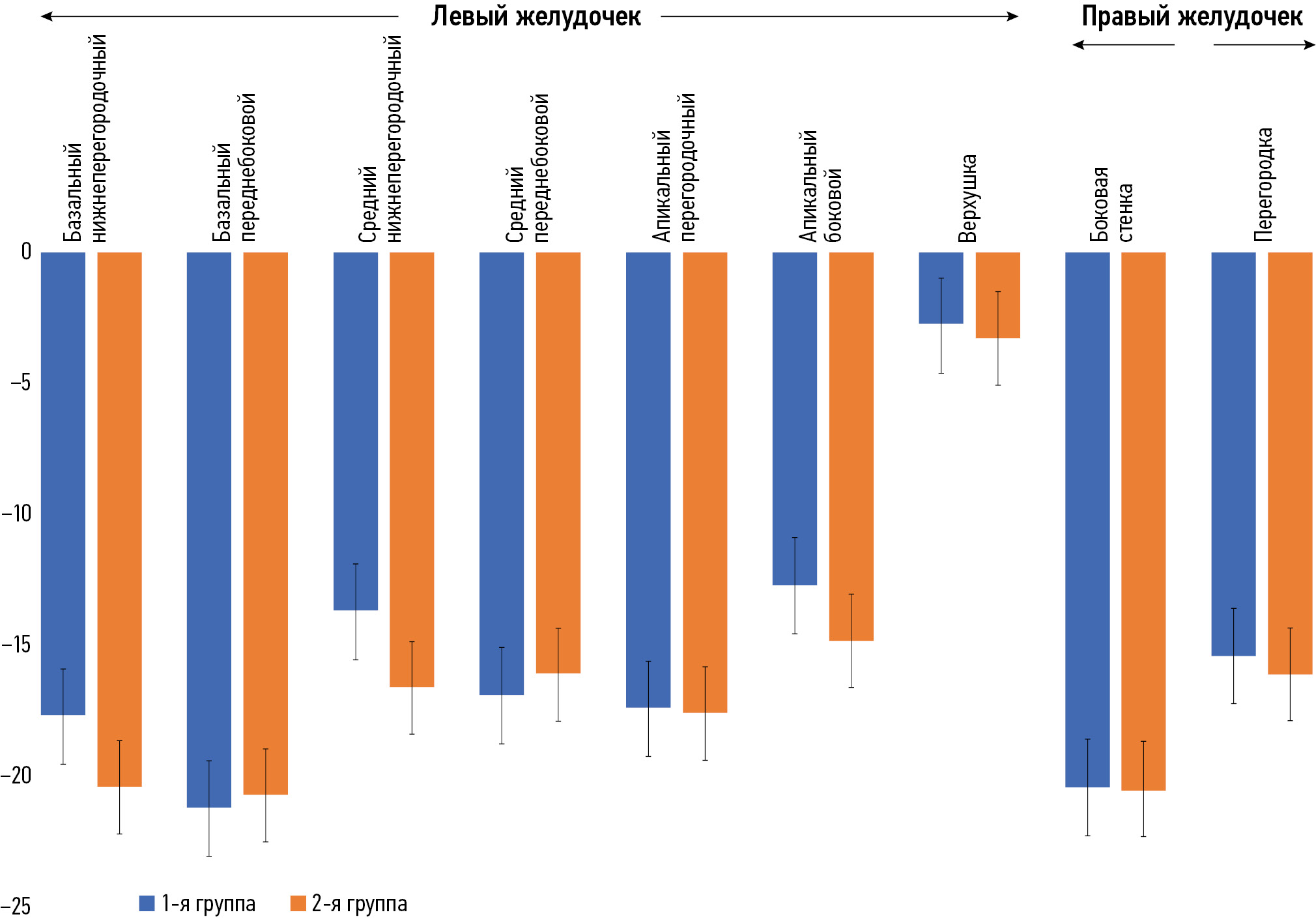 RESULTS: The study included 69 patients aged 3–18 years (11 ± 4 years) who had undergone radical tetralogy of Fallot repair. Circumferential strain in the basal anteroseptal segment of the left ventricle significantly differed between groups 1 (n = 52) and 2 (n = 17): −23.2 ± 5.8% vs −16.7 ± 8.4% (p = 0.003). Moreover, in the basal inferior segment of the left ventricle, significant differences were observed: −10.8 ± 5.2% in group 1 and −7.8 ± 6.8% in group 2 (p = 0.014). The right ventricular end-systolic volume in group 1 was approximately twice as low as in group 2: 56.9 ± 19.1 vs 103.9 ± 111.9 mL/m2 (p < 0.001).