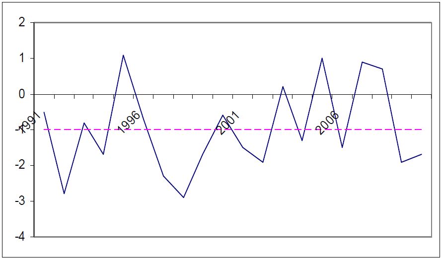 1951 | -20,8 | -23,6 | -8,7 | 6,1 | 5,1 | 12,8 | 18,4 | 15,0 | 9,0 | 0,0 | -9,7 | -12,0 | -0,7 |