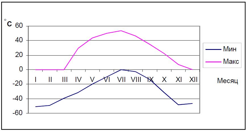 Средний из абсолютных минимумов | -38,2 | -36,6 | -29,3 | -19,5 | -8,3 | -0,7 | 3,4 | 0,3 | -4,6 | -15,8 | -32 | -38,1 | -41,6 |