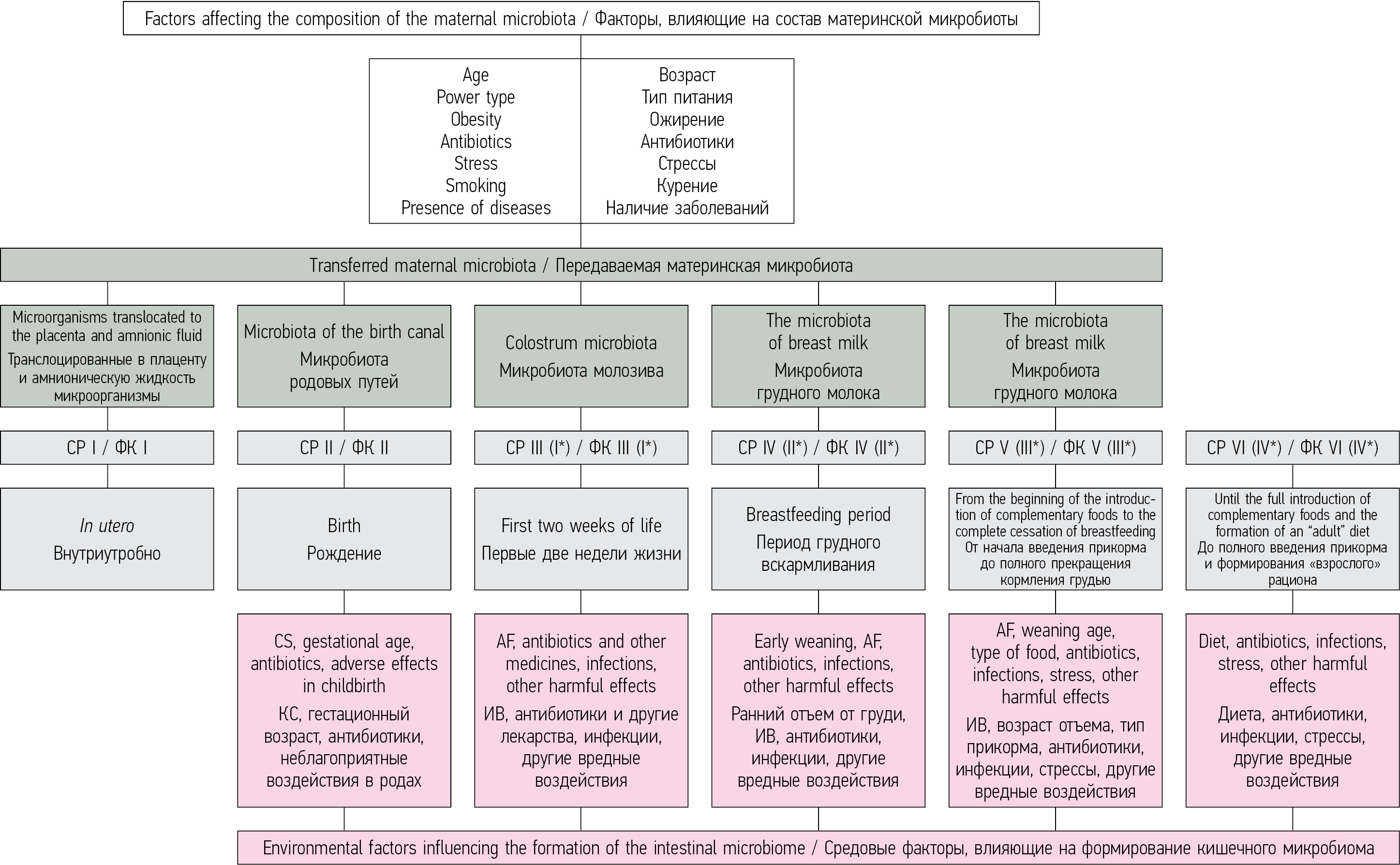 Figure. Phases of early infant colonization (modified by M.S. Cooperstock and A.J. Zedd [179]) and factors influencing this process. CP, colonization phase; CS, caesarean section; AF, artificial feeding. * Early colonization phases