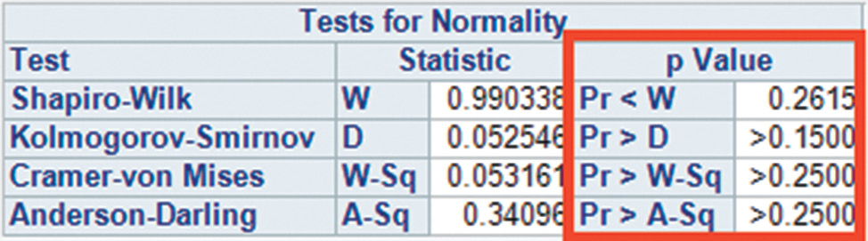 Нормальность распределения подтвердилась не только графиками, но и четырьмя критериями, p > 0,05 (рис. 18).