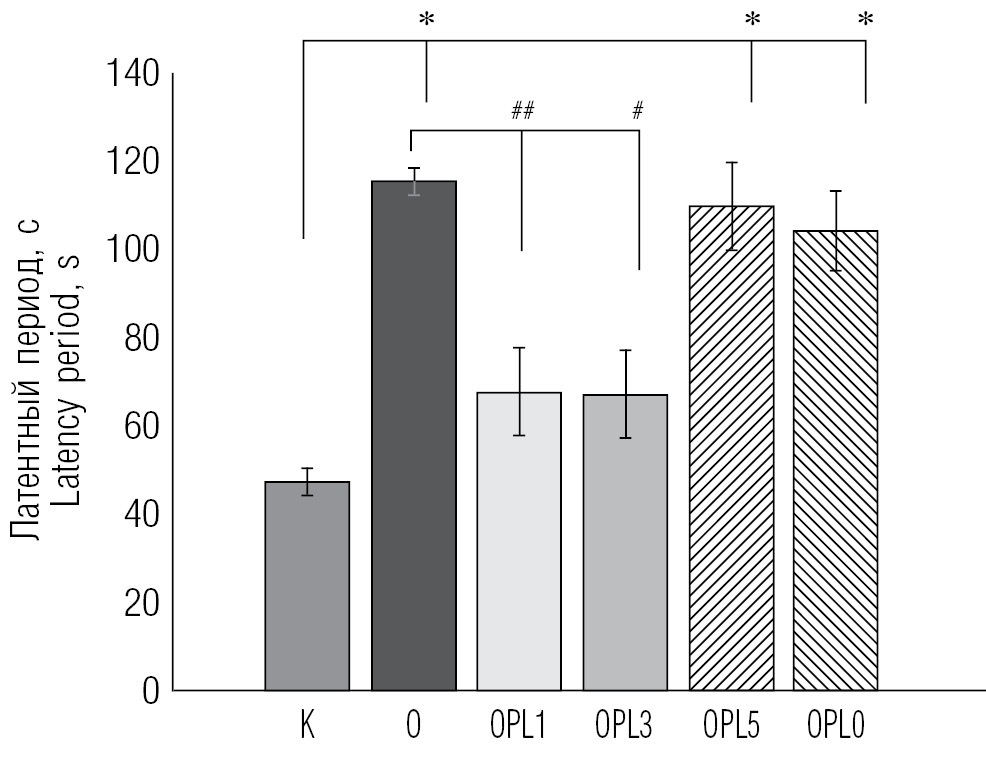 Результаты. Наблюдали значительное ухудшение долговременной памяти у животных, которым вводили PLL спустя 1 и 3 ч после окончания процедуры обучения по сравнению с животными, которым PLL не вводили и обучали аналогичным образом. Введение PLL во время тренировок или спустя 5 ч на долговременную память не влияло.