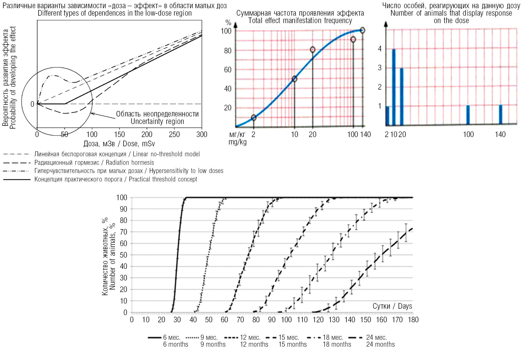Варианты эффектов, обусловленных действием ХВ, включая малые дозы, представлены на рисунке.