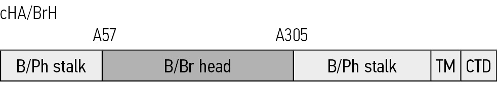 BrH | cHA (head domain from Br-wt and stalk domain from Ph-wt) | Br-wt | B60 | LAIV expressing cHA gene and NA gene of B/Brisbane/60/2008 generated by reverse genetics |