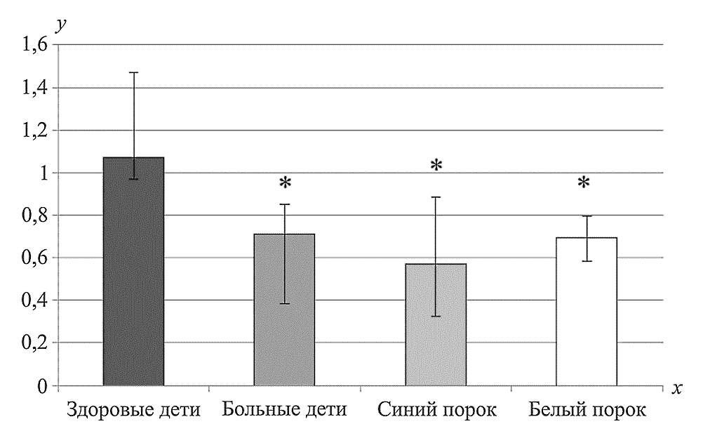 Примечание: * – значимые различия (p ˂ 0,05) между группами по отношению к контролю (M ± m). С – синий тип ВПС; Б – белый тип ВПС.