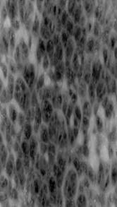 Дерматоскопия: в очаге исследования вблизи выраженных патологических изменений визуализируются псориатические папулы с мономорфными множественными точечными сосудами. В зоне выраженных патологических изменений в разных точках исследования отмечаются множественные образования округлой и овальной формы сосочковой структуры розово-красного цвета с множественными полиморфными сосудами. Между отдельными крупными элементами и вокруг скоплений образований – десквамация эпителия, чешуйки и однородные гомогенные массы белого цвета (рис. 3). Заключение: в области исследования наблюдаются признаки пролиферативного воспалительного процесса с выраженной диффузной инфильтрацией дермы. Полученные данные могут быть интерпретированы как псевдоэпителиоматозная (псевдокарциноматозная) гиперплазия эпидермиса.