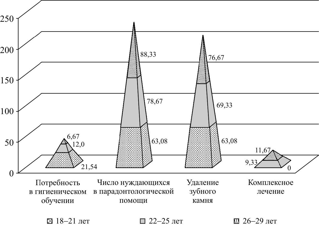 Так, потребность в гигиеническом обучении была необходима 21,54 % начинающих спортсменок, а число лиц, нуждающихся в комплексном лечении, в этой же возрастной группе составила в среднем 9,33 %.