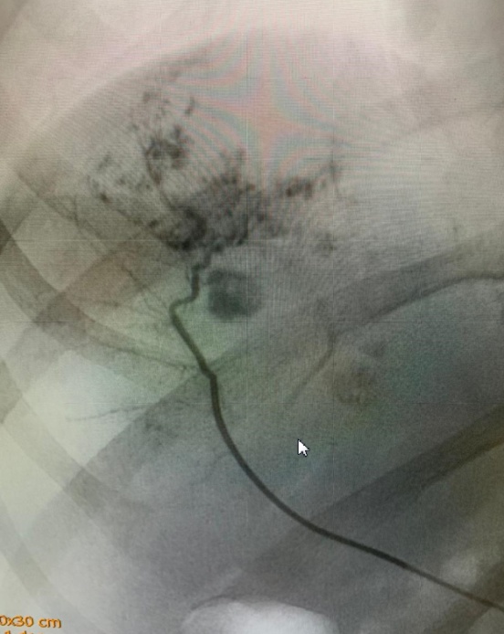 Рис. 5. РЭО ветви правой печеночной артерии, кровоснабжающей гемангиому