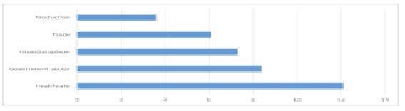 Today, cloud technologies have found their application in almost all fields. However, the leading position was occupied by the healthcare sector in 2018, which accounted for $ 12.1 billion (Fig. 2). [1], [9]
