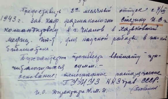 Рис. 6. Приказ о предоставлении отпуска И. А. Стерину для научной работы / Fig. 6. Order on granting leave to I. A. Sterin for scientific work