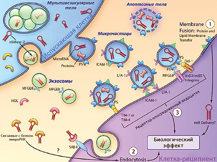 Рис. 3. Межклеточные взаимодействия посредством экстравезикул [14] / Fig. 3. Intercellular interactions through extravesicles [14]