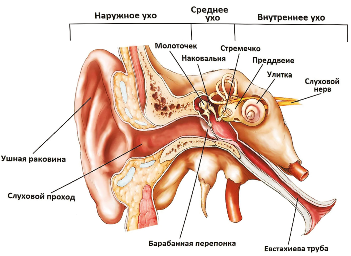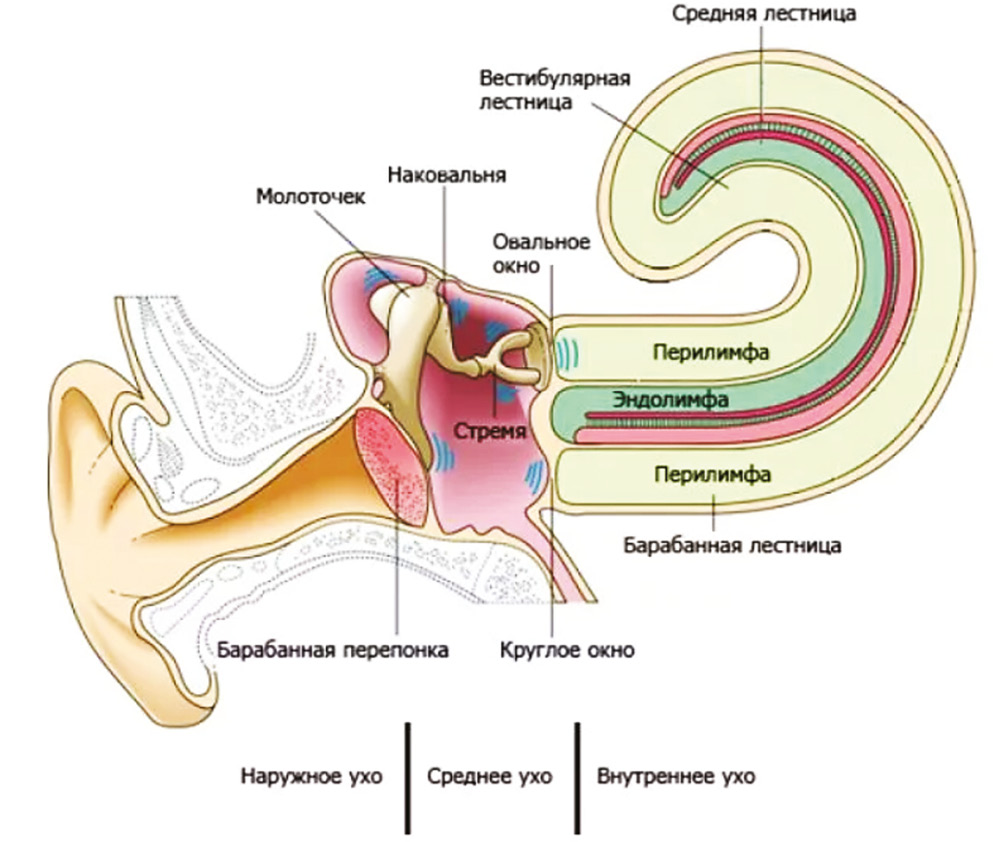 Рис. 1. Строение органа слуха / Fig. 1. The structure of the organ of hearing
