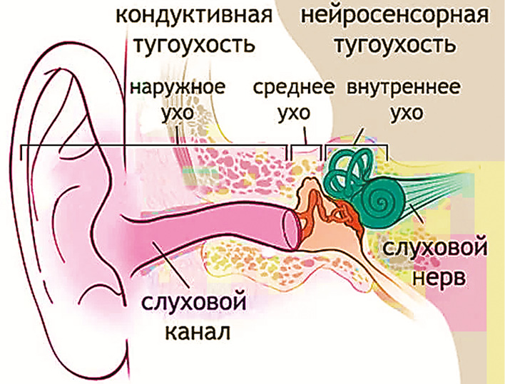 Рис. 8. Типы тугоухости и локализация поражения органа слуха / Fig. 8. Types of hearing loss and localization of damage to the organ of hearing