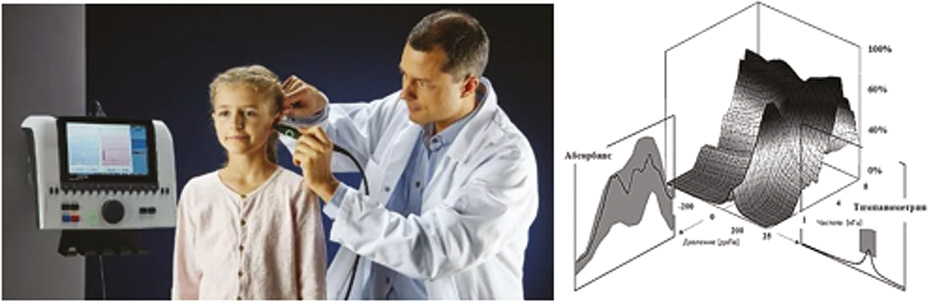 Тимпанометрия отображает нарастание акустического импеданса в среднем ухе (рис. 14). Под акустическим импедансом понимают сопротивление, которое оказывается прохождению звука (акустическая проводимость структурами наружного слухового прохода и среднего уха). Тест обладает наибольшей информативностью при поражении среднего уха с выделением большого количества транссудата.