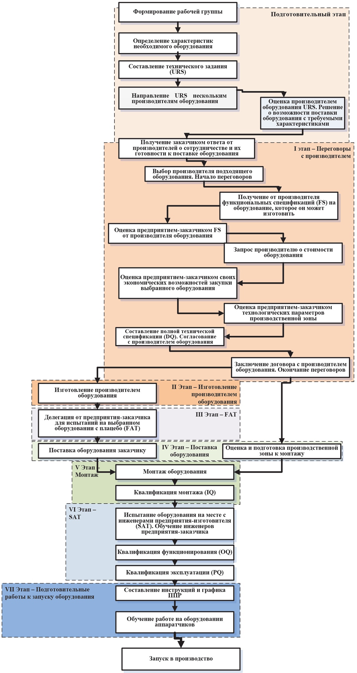 Необходимо отметить, что длительные процессы, такие как заказ оборудования и организация или перепланировка чистых помещений на производственной площадке, следует осуществлять по возможности параллельно для экономии времени, затрачиваемого на проект.