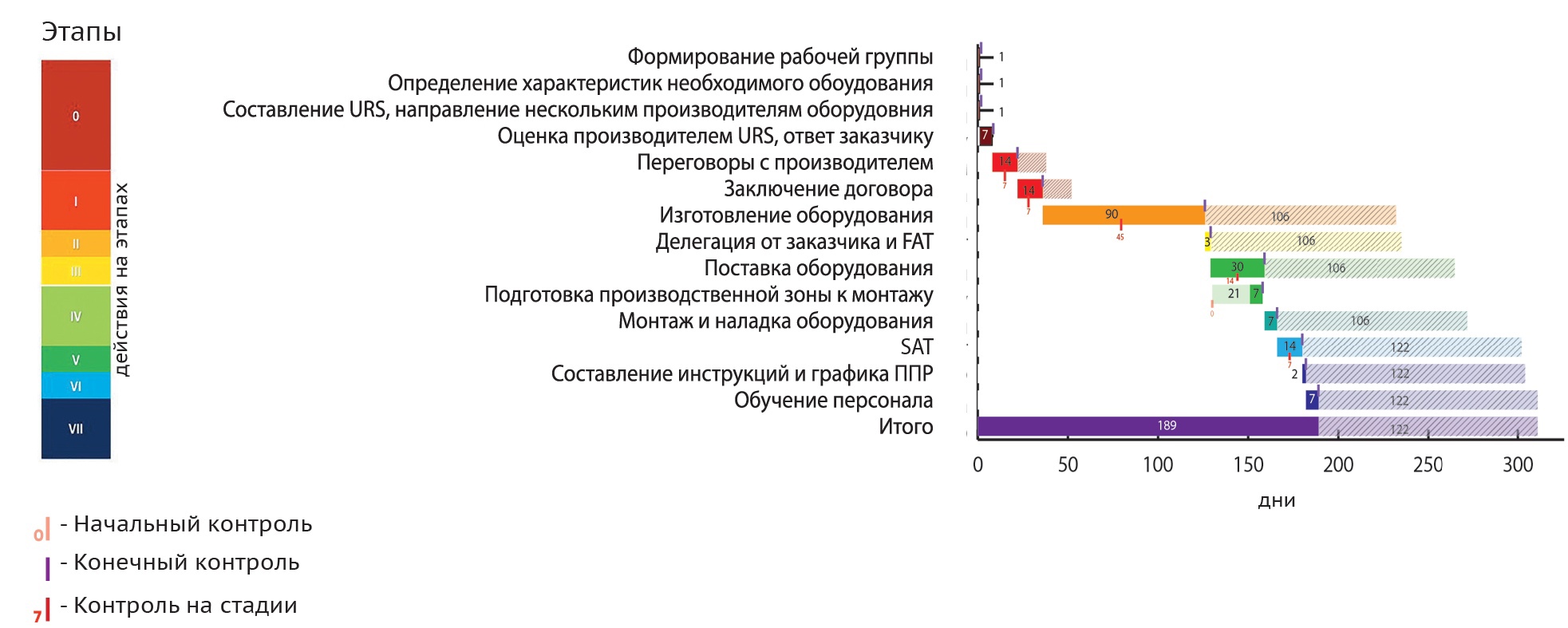 Рис. 7. Временная диаграмма подготовительного этапа трансфера технологий с учетом заказа оборудования