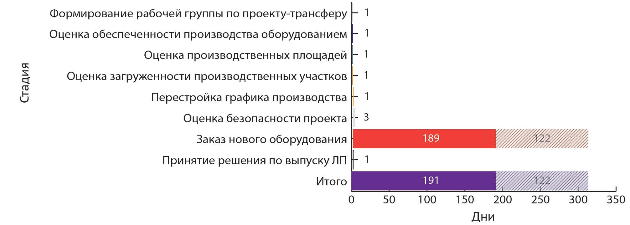 – подготовке производственного участка к трансферу технологии (времени разработки стандартных операционных процедур по очистке и подготовке оборудования, разработке маршрутных карт, определению сроков трансфера технологии на производственном участке, обучению операторов и другие).