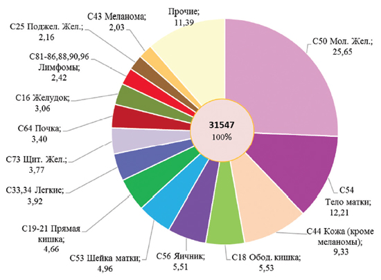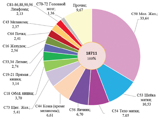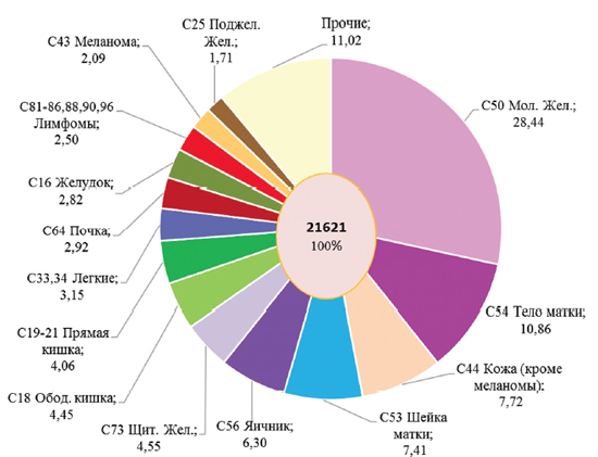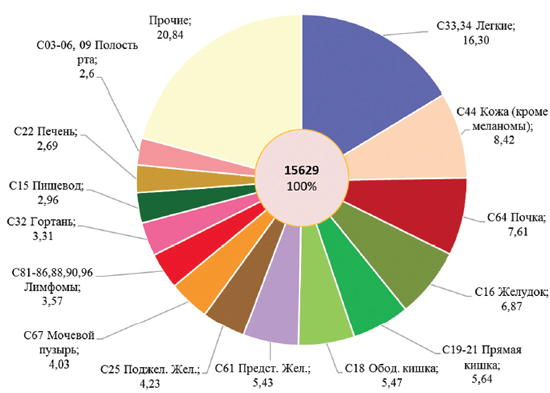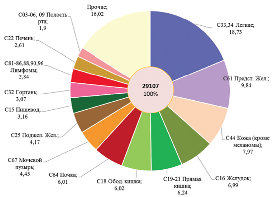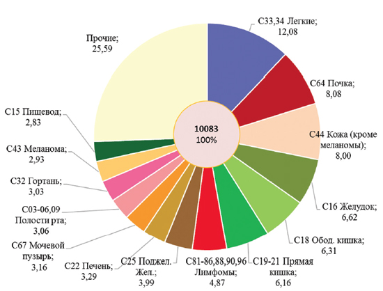 Это распределение со временем может изменяться, учитывая продолжающийся процесс старения населения и увеличение продолжительности жизни. В дальнейшем при оценке специфики распространенности ЗНО и выживаемости больных мы будем опираться на рекомендации ВОЗ.