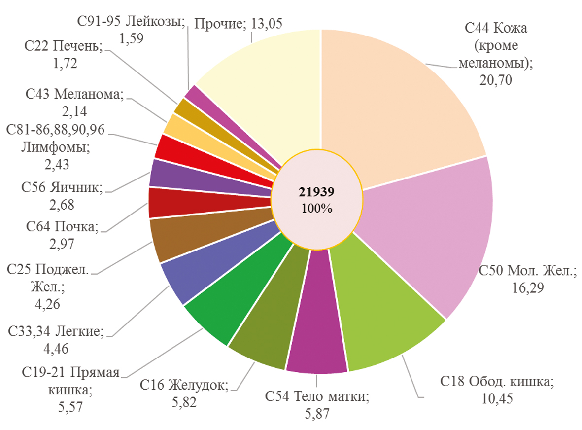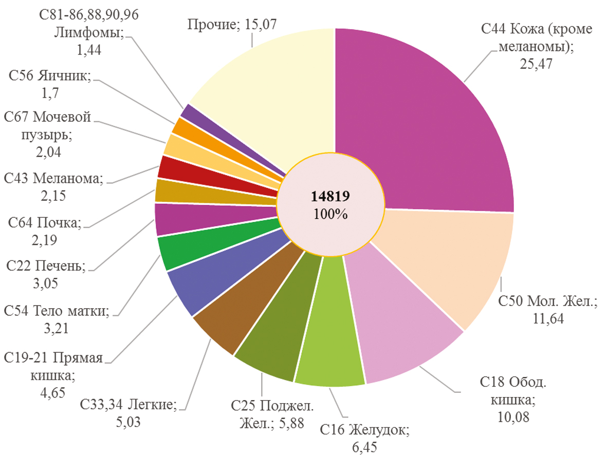 - Malignant tumors in Russia in 2019 (morbidity and mortality) / Ed. A. D. Kaprina, V. V. Starinskogo, G. V. Petrovoi. M.: P. A. Herzen MSIOI – filial of NMRC of radiology Ministry of Public Health of the Russian Federation, 2020. – 214p. (In Russ).
