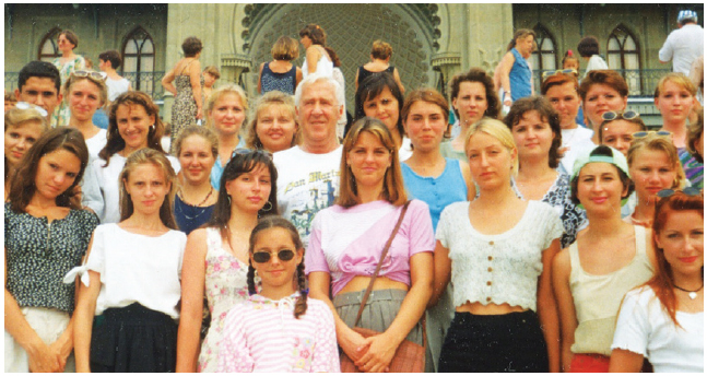 Fig. 4. On a field trip with students of the sports and health camp of SPHFA in Crimea, 1996