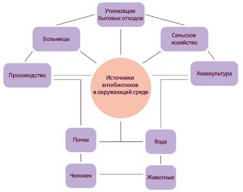 Рис. 1. Замкнутый цикл загрязнения антибиотиками окружающей среды