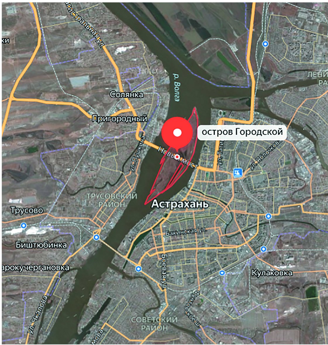 Рукав Городской (рис. 3) имеет активный водообмен. Берег пологий, максимальная глубина рукава 15 метров. Дно водоема илистое. Течение быстрое, вода не прозрачная, мутная. Уровень антропогенной нагрузки высок в связи с судоходством (здесь расположена организация, занимающаяся перевозкой грузов водным транспортом – «Астрахань Обь-Иртышфлот»). В акватории протока расположен рекреационный объект − городской пляж. В связи с неорганизованным туризмом, во время летнего сезона возможно попадание в проток значительного количества различного бытового мусора. Чуть выше по течению находится водозабор водопроводной станции города Астрахани.