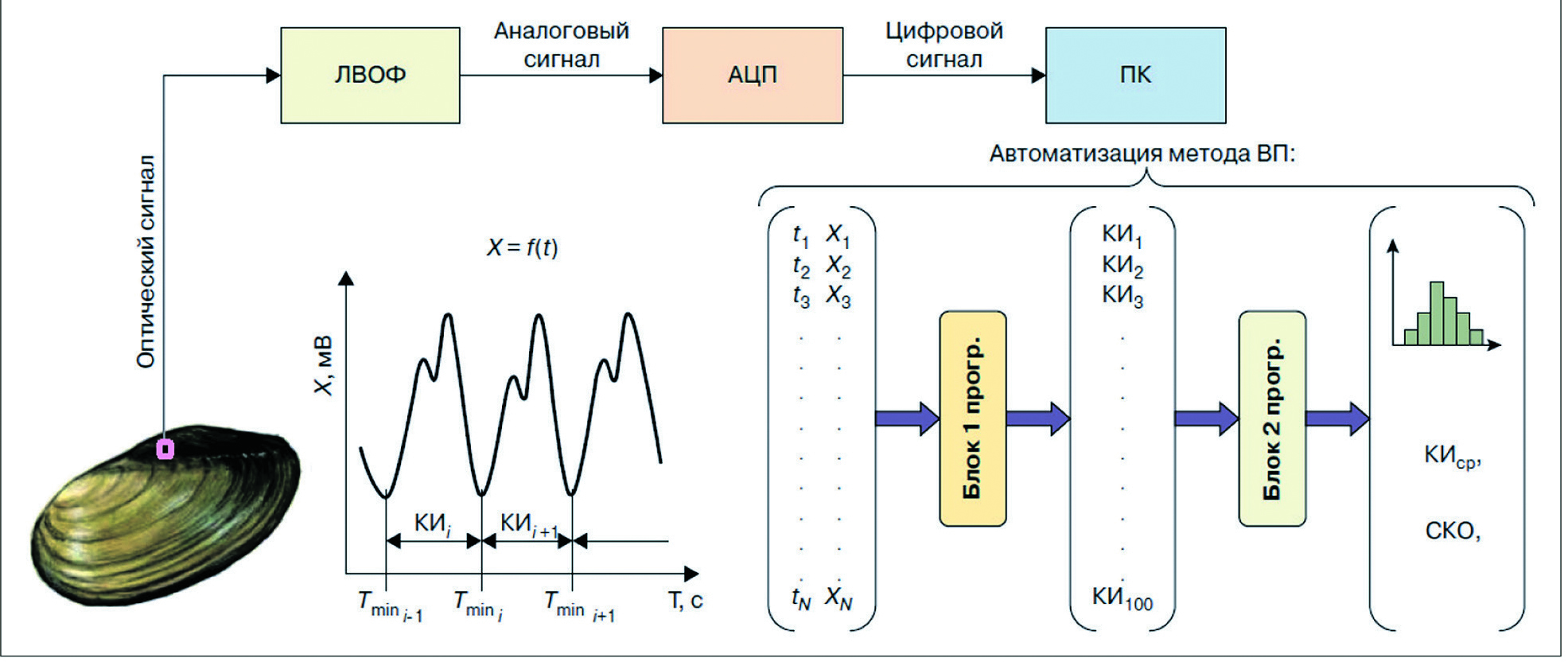 Это обусловлено тем, что моллюски обладают высокой чувствительностью и относительно быстро реагируют на загрязнение, защищаясь и изолируясь закрытием створок своих раковин от внешних воздействий. В результате значительно изменяется их кардиоритм, что можно использовать при разработке инструментальных систем и алгоритмов диагностики состояния среды их обитания.