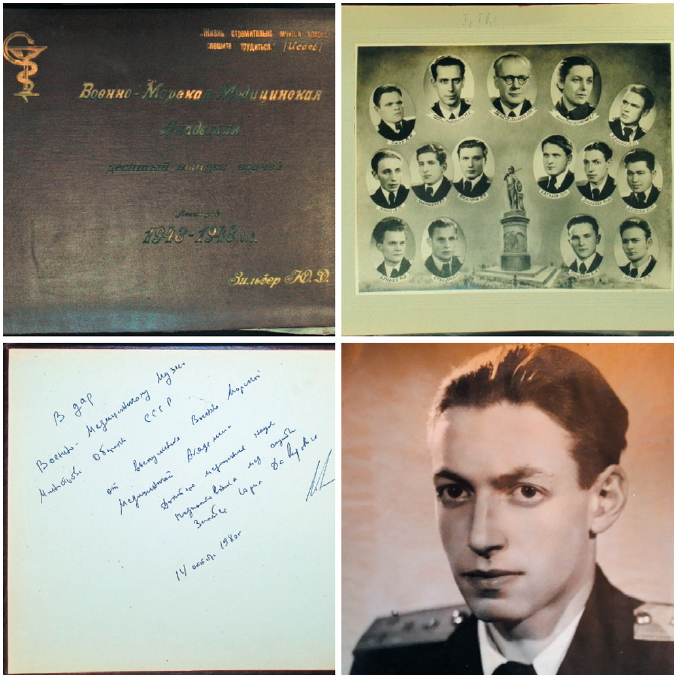 Fig. 1. Photos from the album «Naval Medical Academy. The tenth issue of doctors, with a donation signature of the VMM of the Ministry of Defense of the USSR from a graduate of the Doctor of medical Sciences, Lieutenant Colonel m/s Zilber Yu.D.»