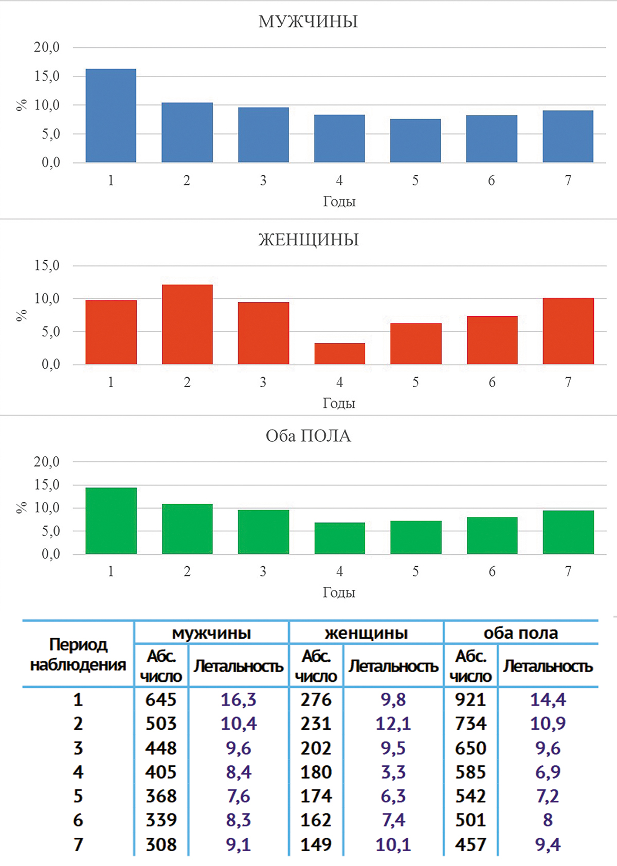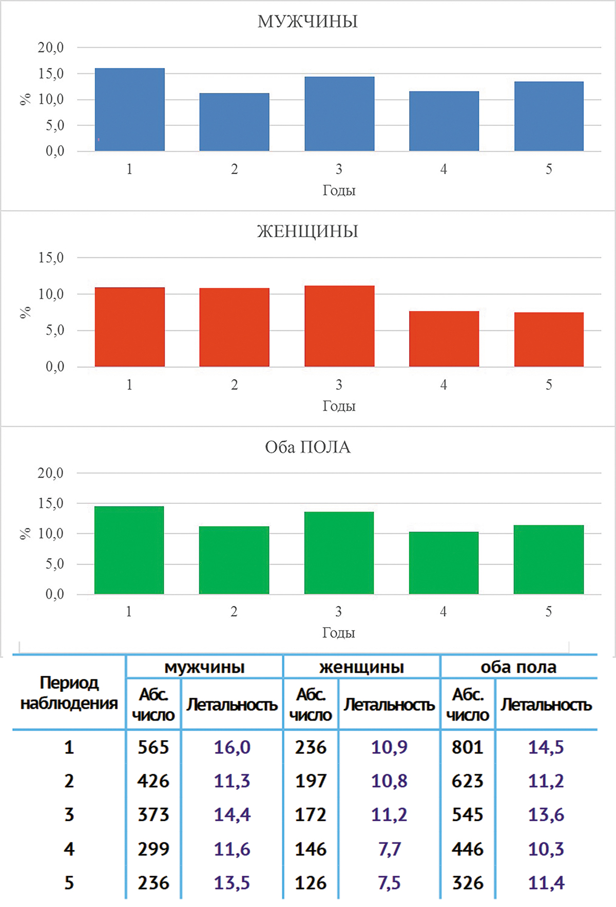 Период наблюдения | мужчины | женщины | оба пола | |||
