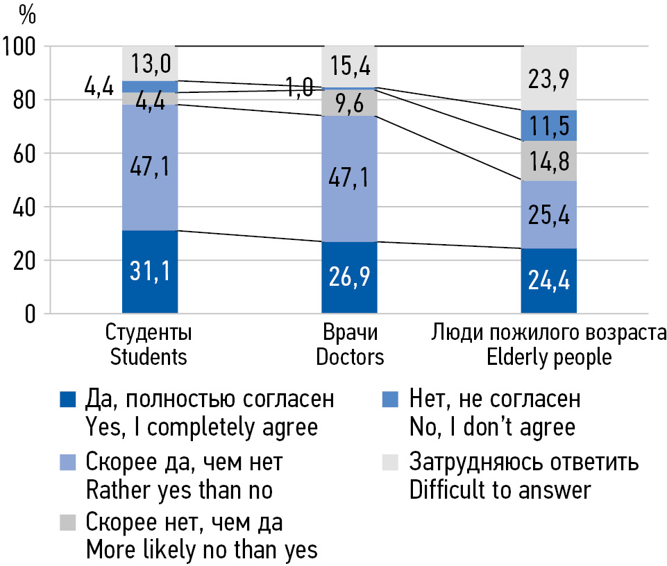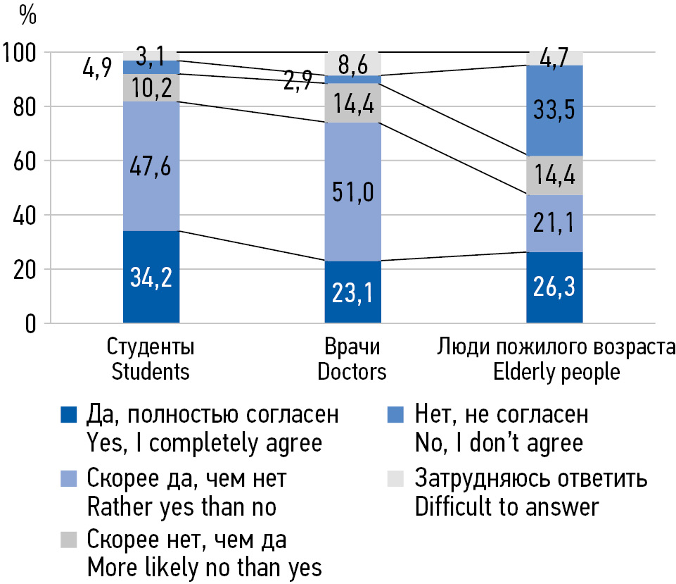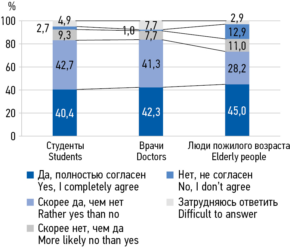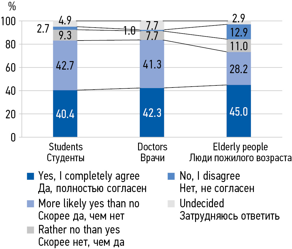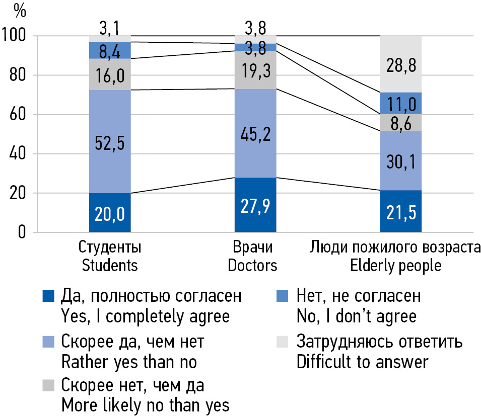 MATERIALS AND METHODS: In the period from 2018 to 2022, 538 people aged 20 to 75 were interviewed in 3 subgroups: 1) senior students of a medical university of medical specialties, 2) young and middle-aged primary health care doctors, 3) elderly people.