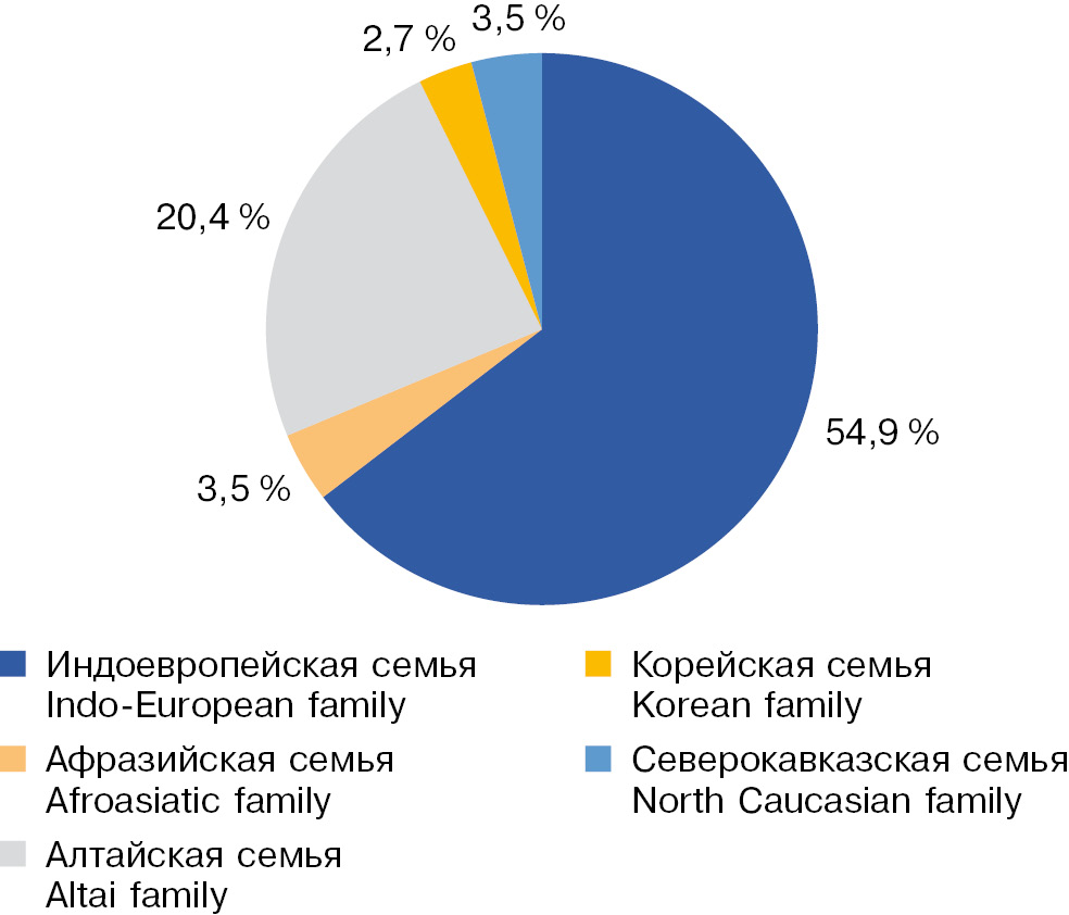 这项研究包括113名参与者:45.1%的男性(n = 51)和54.9%的女性(n = 62)。调查对象平均年龄为22.4±2.5岁。大多数与会者(73.5%)是俄罗斯联邦公民;26.5%的人拥有其他国家的公民身份:摩尔多瓦、德涅斯特河沿岸地区、叙利亚、塔吉克斯坦、土库曼斯坦、乌兹别克斯坦、巴西、埃及、约旦、哈萨克斯坦、肯尼亚、吉尔吉斯斯坦、拉脱维亚。俄罗斯联邦的公民是该国40个不同地区的居民。此外,所有的研究参与者(n = 113)根据他们的国籍被划分为五个主要的民族语言家庭(见图)。