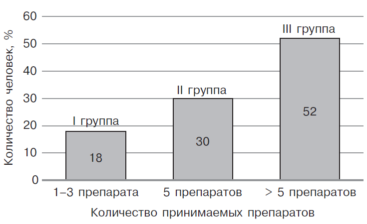 Рис. 1. Распределение пациентов по группам в зависимости от принимаемых препаратов