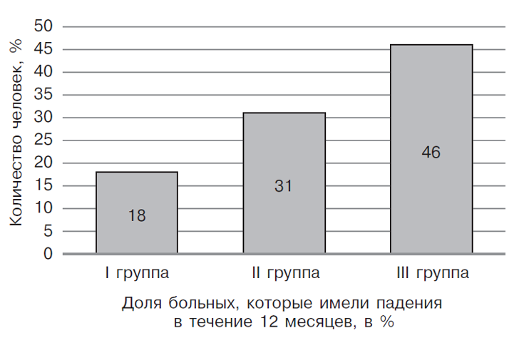 Рис. 2. Доли больных, имевших падения в течение 12 месяцев