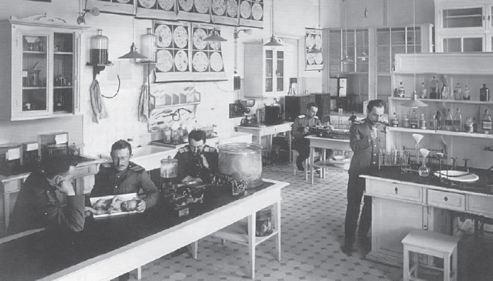 Рис. 1. Слушатели Императорской Военно-медицинской академии в лаборатории. Фото 1910-х гг.