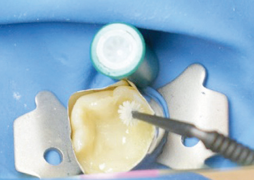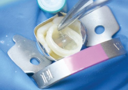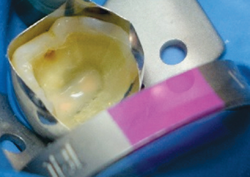 Рис. 3. Конденсация ленты на дно полости с переходом на дефект на контактной поверхности зуба