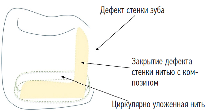 Рис. 5. Схема укладки нити с композитом в полость зуба