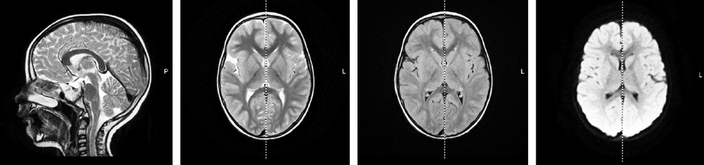 Рис. 2. МРТ головного мозга 1,5 Тс пациента (режимы T2W, T1W, FLAIR, DWI): без структурных изменений