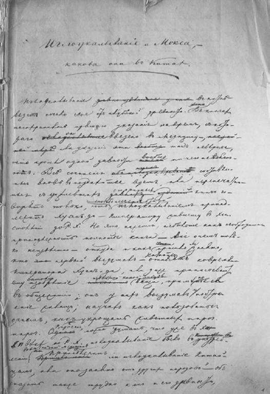 Рисунок. Первая страница рукописи А.А. Татаринова «Иглоукалывание и мокса — каковы они в Китае»