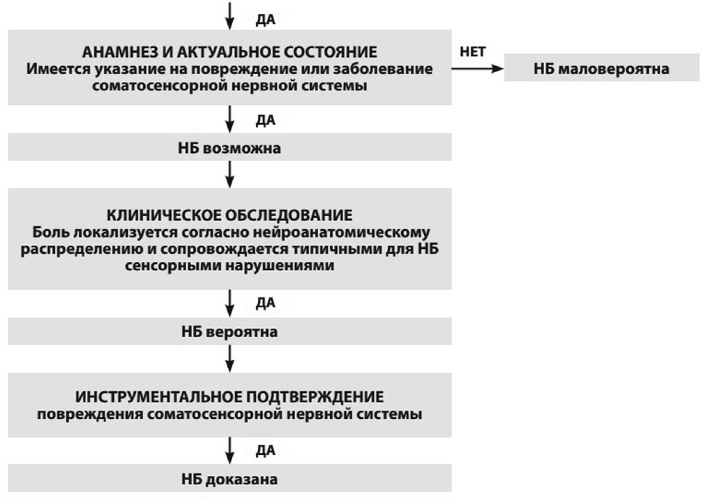 Рис. 1. Алгоритм диагностики невропатической боли в соответствии с существующими клиническими рекомендациями