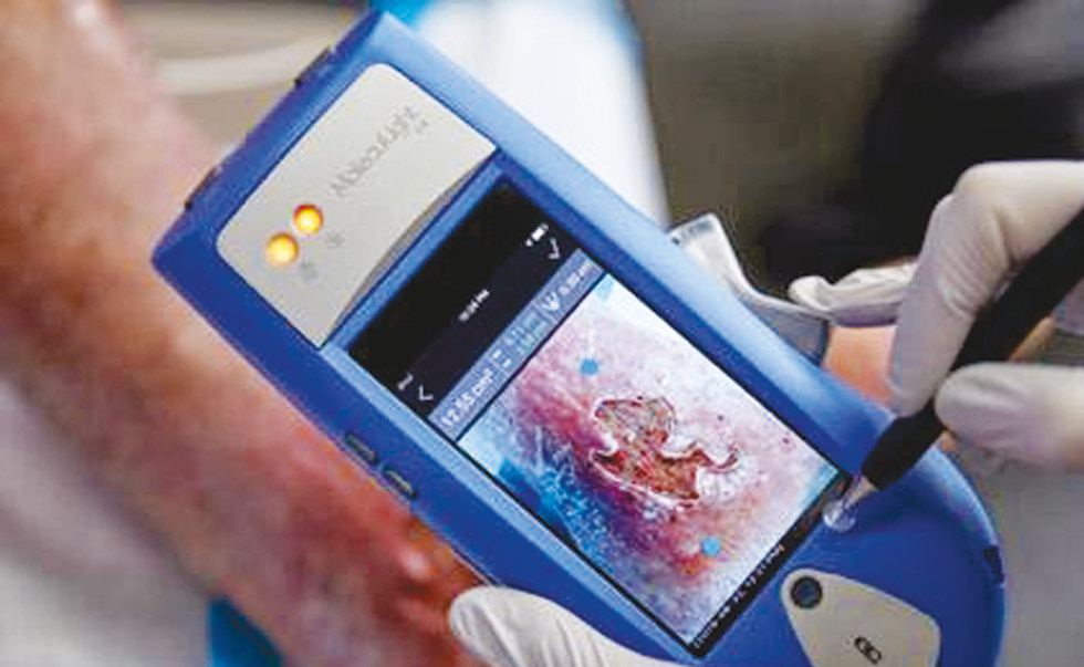 На сегодняшний день на мировом рынке представлены различные торговые марки оптико-электронных решений. Так, на индийском внутреннем рынке представлено инновационное устройство для визуализации ILLUMINATE® компании Adiuvo Diagnostics, которое может выдавать мультиспектральные изображения аутофлуоресценции. Используя алгоритмы машинного обучения на полученных изображениях, эта технология может помочь в визуализации очагов раневой инфекции (рис. 1). Производителем заявлено, что устройство предназначено для продажи только в Индии.