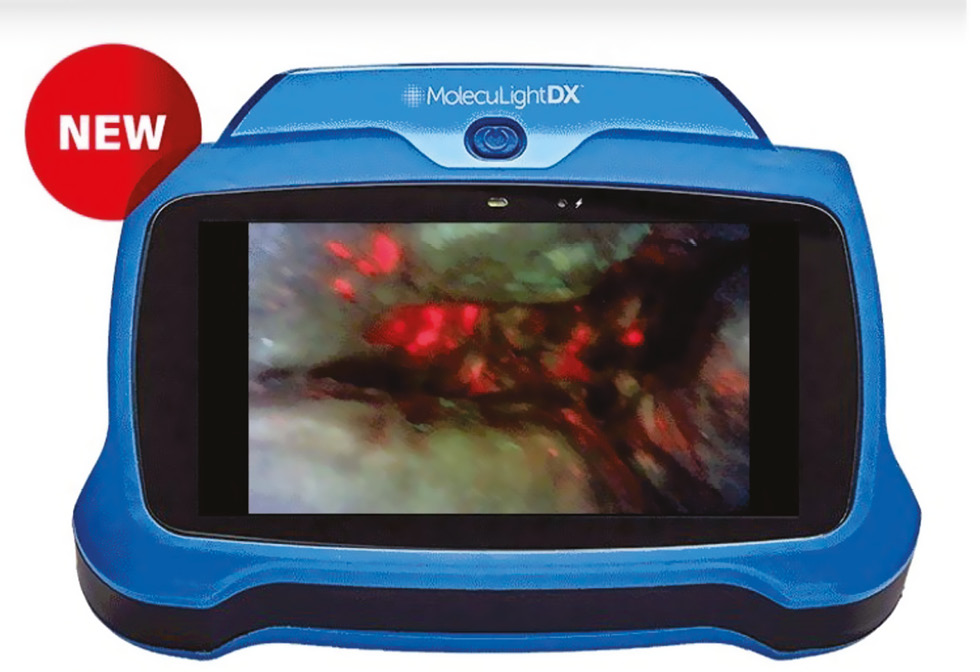 Рис. 3. Устройство MolecuLight DX™ той же компании способно обнаружить большинство видов бактерий, продуцирующих пор- фирин, при повышенной бактериальной нагрузке (>104 КОЕ/гр)