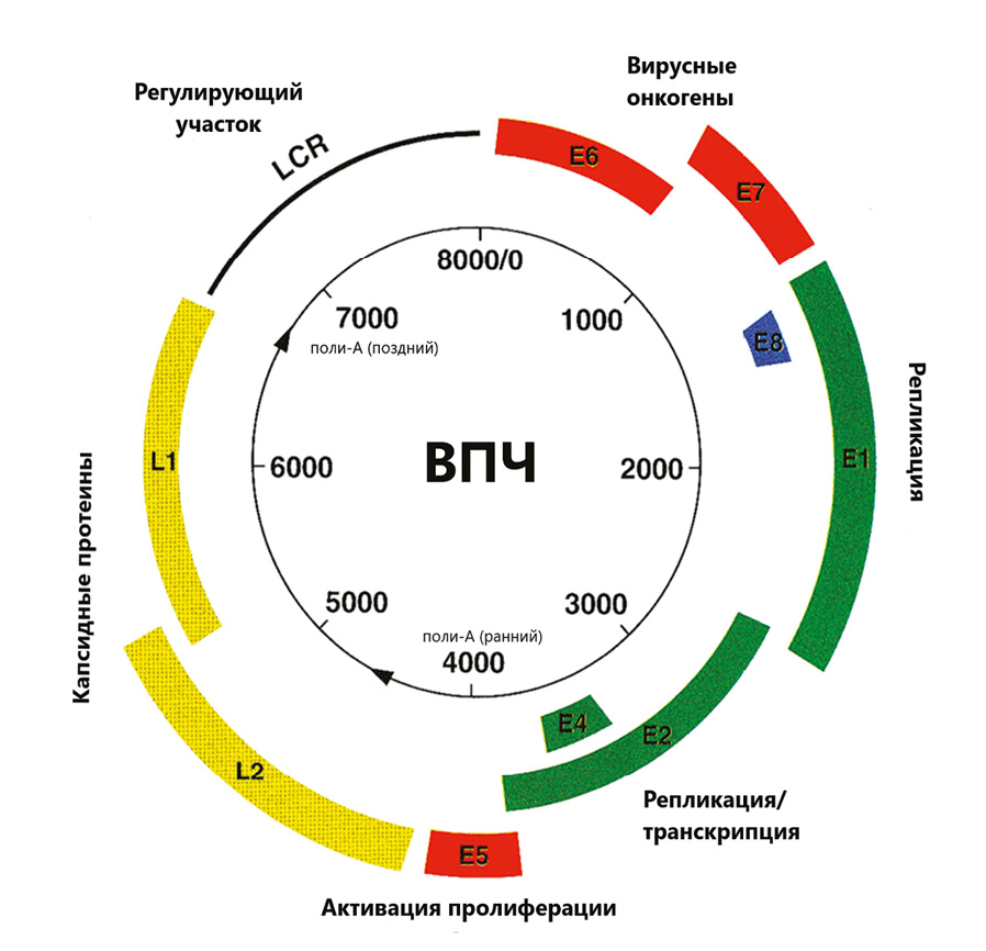 Рис. 4. Строение генома вируса папилломы человека 16-го типа [4]